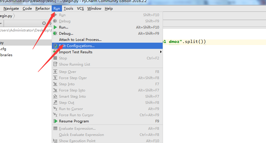 7. 上面把文件搞定了,下面要配置一下pycharm了。点击Run->Edit Configurations