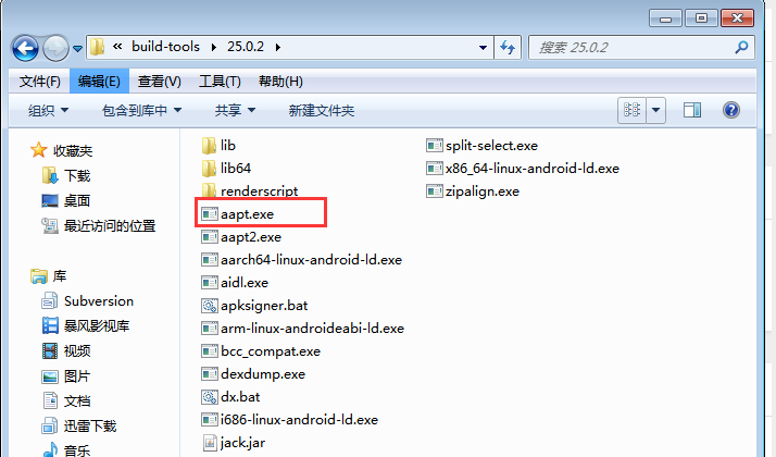 3.下载完成后,在D:\APP\android-sdk_r24.4.1-windows\android-sdk-windows\build-tools\25.0.2目录下找到aapt.exe,并将该路径设置环境变量,添加到path下;