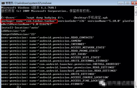 4.在这里可以看到apk包名:com.taobao.taobao