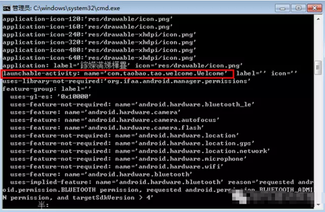2.这里可以看到,淘宝的laucherActivity值为com.taobao.tao.welcome.Welcome