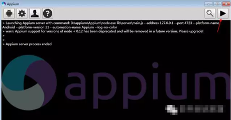 1.启动appium,右上角变成三角形