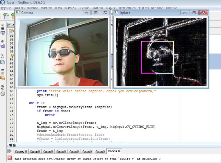 可以看到,OpenCV的API相当清晰,使用Python的包装,可以使得代码非常小。好了,我们可以看看程序的运行结果: