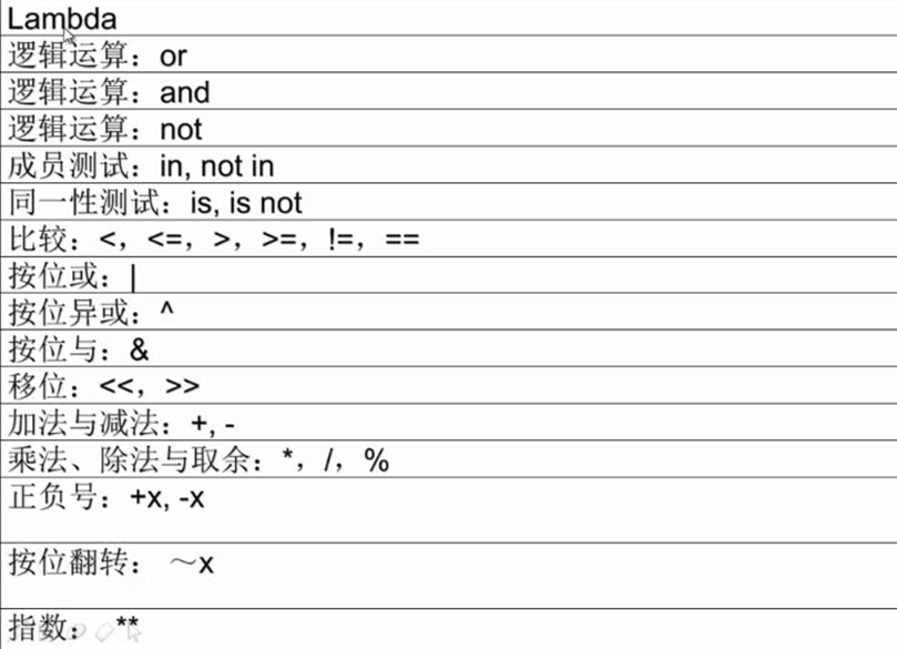 and逻辑与: True and False or逻辑或: False or True not逻辑非: not True