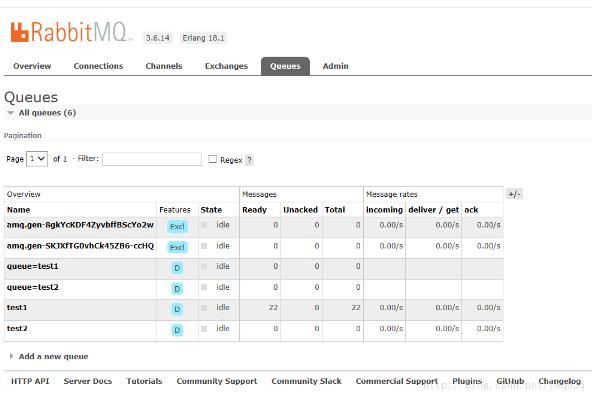 消息传递消费过程中,可以在rabbit web管理页面实时查看队列消息信息。