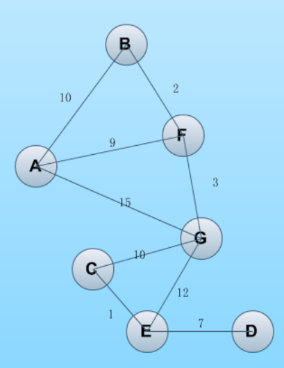 node_list = [('A', 'F', 9), ('A', 'B', 10), ('A', 'G', 15), ('B', 'F', 2),