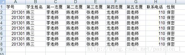 biaotou=['学号','学生姓名','第一志愿','第二志愿','第三志愿','第四志愿','第五志愿','联系电话','性别','备注']