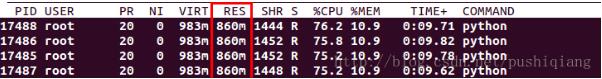 再次用top或者ps来查看进程的内存使用情况: