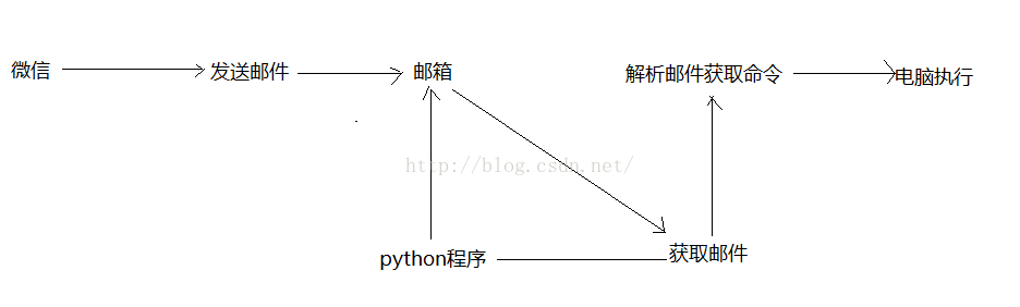 我们使用微信给特定的邮箱发送一封邮件,其中包含了我们想要电脑执行的命令,然后电脑上的python程序获取到这封邮件,然后解析其中的命令,再交付给电脑执行。可以看出,这其中主要的技术难点就是获取邮件了!但是!这没有任何问题,大家看到我的上一篇博客《python 收发邮件》就可以了!