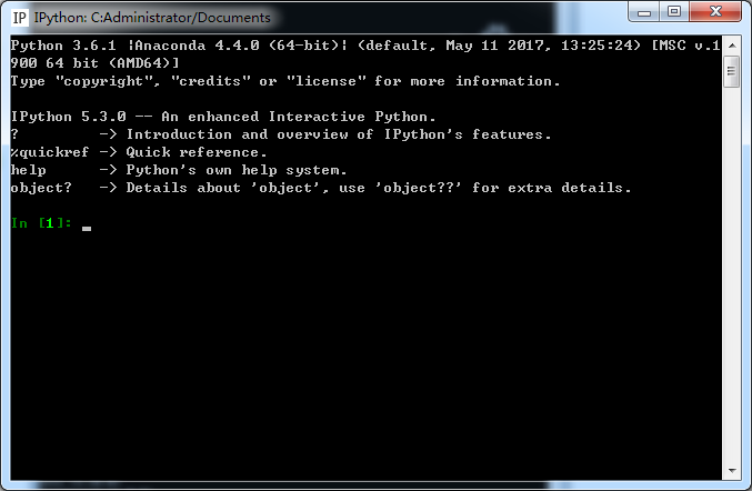 这个和我们直接安装Python得到的Python shell用法一样。当然由于安装了anaconda,所以在这里好多包我们都可以使用了。