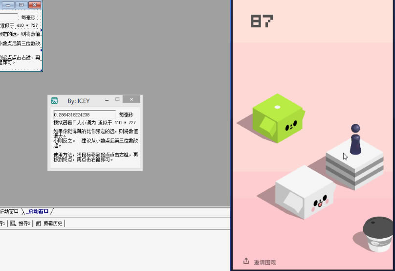 识别棋盘:靠底色和方块的色差来做,从分数之下的位置开始,一行一行扫描,由于圆形的块最顶上是一条线,