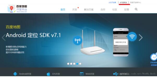 访问百度地图API需要一个信令(AK),打开百度地图开放平台,点击右上角“API控制台”,即进入了百度地图的开发界面。