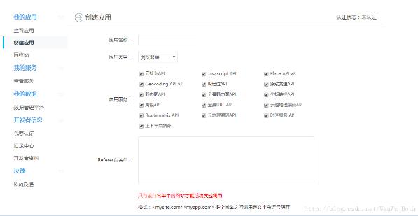 选择“创建应用”-应用类型勾选“浏览器端”–勾选所用到的服务(一般全选即可),此时就创建好了应用账号,得到“AK”
