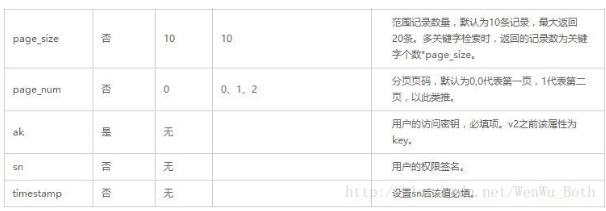 打开百度地图API的POI模块,网址:http://lbsyun.baidu.com/index.php?title=webapi/guide/webservice-placeapi,这个页面详细介绍了Place API的请求参数及返回数据的情况。