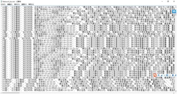 最后输出整个城市的公交网络站点信息,这次就先保存在txt文件里吧,也可以保存到数据库里,比如mysql或者MongoDB里,这里我就不写了,有兴趣的可以试一下,附上程序运行后的结果图:
