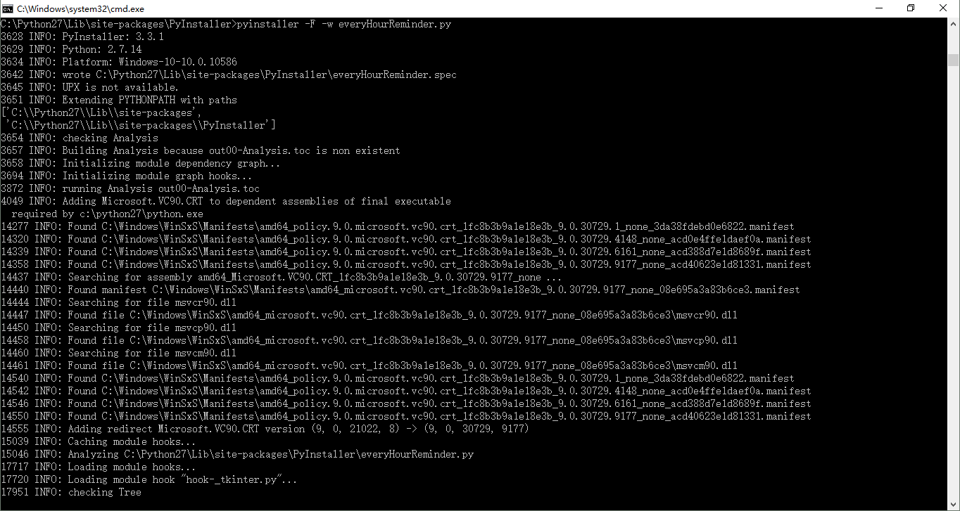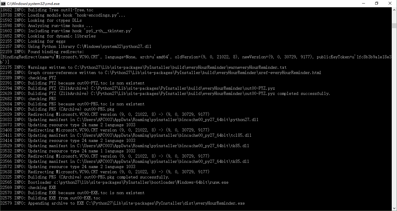 到指定目录下使用pyinstaller来讲py文件编译成exe
