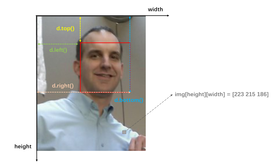 多张人脸要输出到一行,先进行一次人脸的遍历,记每张人脸的尺寸为height*width(高度和宽度说明见图2),