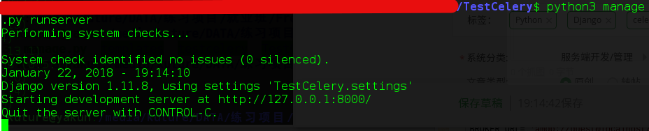 1>打开终端输入:django-admin startproject TestCelery 创建django项目('TestCelery'是项目名称)