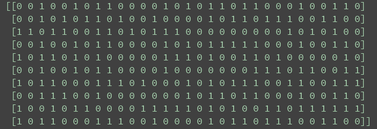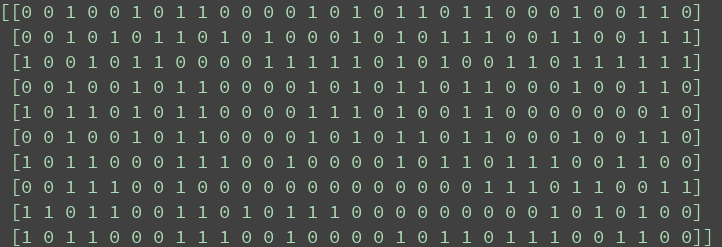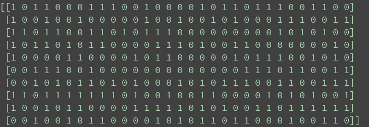 chromosomesEncoded = getIntialPopulation(lengthEncode, 10)