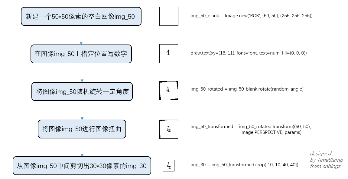 这里是生成“手写体”数字的核心步骤,一个正常的图像经过扭曲之后就可以得到想要的验证码了: