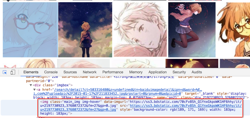 通过分析可以知道,前面两个是缩小的版本,hoverURL 是鼠标移动过后显示的版本,objURL 应该是我们需要的,可以分别打开这几个网址看看,发现 objURL 的那个最大最清晰。