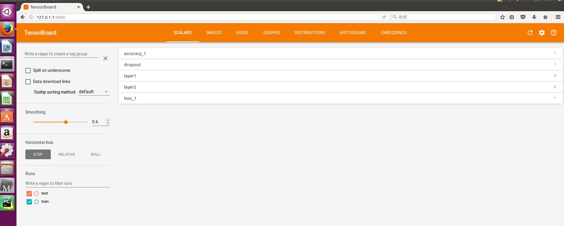 将http://127.0.1.1:6006在浏览器中打开,成功的话如下: