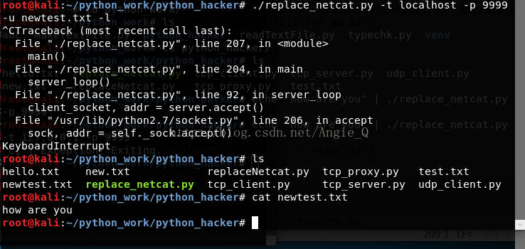4、在服务端这边也“Ctrl+C”,并可以进行后续操作查看刚刚建立的文件。