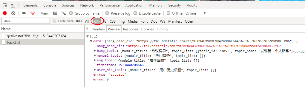 前面提到过,有部分图片是动态加载的,那么首先我们得弄清楚,这部分图片是怎么动态加载的。在浏览器中打开百度贴吧的首页,可以明显的看到,在往下滚动滚动条的时候,当滚动到底部的时候,滚动条缩短了,并向上移动了一段距离。这个现象也正是有DOM元素动态的添加到了html文档的一个表现。动态加载数据无非就是ajax请求,而ajax本质上就是XMLHttpRequest请求(简称xhr)。在谷歌浏览器中,我们可以通过开发者工具的network面板来监测xhr请求。