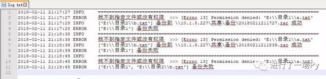 logging.error("备份失败:WinRAR出错,确认路径 或 压缩被中断")
