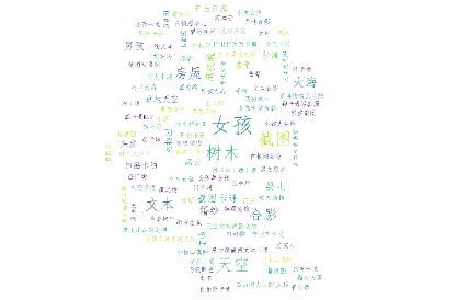 通过词云,我们可以发现:在微信好友中的签名词云中,出现频率相对较高的关键字有:女孩、树木、房屋、文本、截图、卡通、合影、天空、大海。这说明在我的微信好友中,好友选择的微信头像主要有日常、旅游、风景、截图四个来源,好友选择的微信头像中风格以卡通为主,好友选择的微信头像中常见的要素有天空、大海、房屋、树木。通过观察所有好友头像,我发现在我的微信好友中,使用个人照片作为微信头像的有15人,使用网络图片作为微信头像的有53人,使用动漫图片作为微信头像的有25人,使用合照图片作为微信头像的有3人,使用孩童照片作为微信头像的有5人,使用风景图片作为微信头像的有13人,使用女孩照片作为微信头像的有18人,基本符合图像标签提取的分析结果。