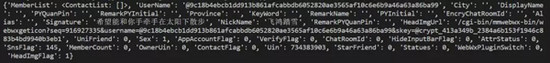 同平时登录网页版微信一样,我们使用手机扫描二维码就可以登录,这里返回的friends对象是一个集合,第一个元素是当前用户。所以,在下面的数据分析流程中,我们始终取friends[1:]作为原始输入数据,集合中的每一个元素都是一个字典结构,以我本人为例,可以注意到这里有Sex、City、Province、HeadImgUrl、Signature这四个字段,我们下面的分析就从这四个字段入手: