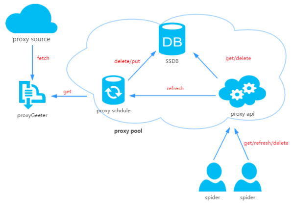 get/delete/refresh/get_all等接口的具体实现类,目前代理池只负责管理proxy,日后可能会有更多功能,比如代理和爬虫的绑定,代理和账号的绑定等等;