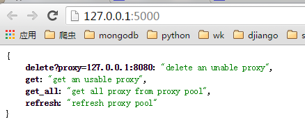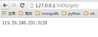 启动ProxyApi.py后即可在浏览器中使用接口获取代理,一下是浏览器中的截图:
