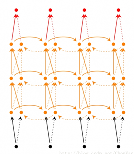 深层循环神经网络在每个时刻上将循环体结构复制多次,和卷积神经网络类似,每一层循环体中的参数是一致的,不同层的参数可以不同。