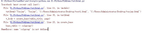 这是一个将任意文本文件转化为HTML文档的例子,主要是在调用txt2html函数,该函数有4个参数,页面的标题,展示文本内容的表格的标题,输入文件路径,输出文件路径