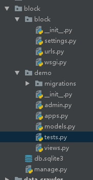 通过django-admin startproject block创建一个block的项目,在项目中创建一个demo项目django-admin startproject demo ,目录结构: