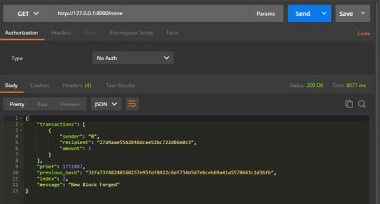 让我们通过请求 http://127.0.0.1:8000/mine 来进行挖矿
