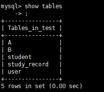 这是说明查询到了5条数据,那如果我们需要查看这五条具体的数据是什么,我们要用: