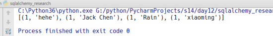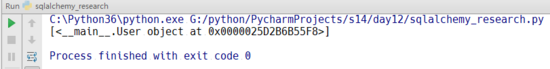 插入数据是使用sessionmaker,通过绑定上面创建的连接创建出一个类,生成session实例(相当于之前的cursor),用面向对象的方式创建两条记录,然后添加,最后commit就可以了