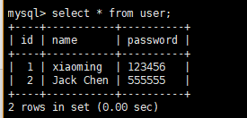 data=Session.query(User).filter(User.id>1).first() print(data) data.name = "Jack Chen" data.password = "555555" Session.commit()
