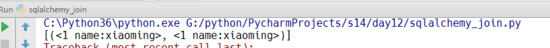 obj = session.query(sqlalchemy_multi_fk.Customer).filter(sqlalchemy_multi_fk.Customer.name=="xiaoming").first() print(obj.name,obj.billing_address,obj.shipping_address)
