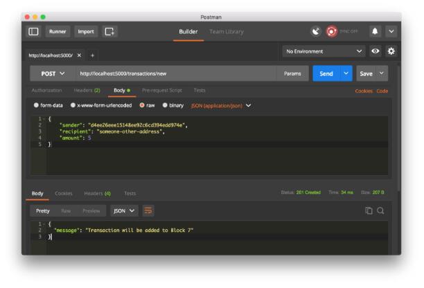 接下来我们需要添加一个交易,来完善下new_transaction方法
