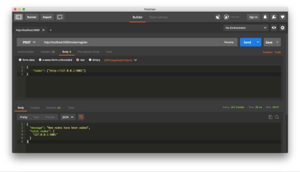 让我们添加两个路由,一个用来注册节点,一个用来解决冲突。