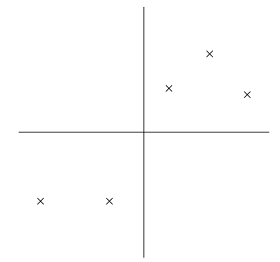 数据经过如上处理之后,接下来就是寻找数据大致的走向了。一种方法是找到一个单位向量u,使所有数据在u上的投影之和最大,当然数据并不是严格按照u的方向分布的,而是分布在其周围。考虑下图的数据分布(这些数据已经做了前期的预处理)。