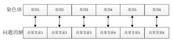 基因:在GA算法中,基因代表了具体问题解的一个决策变量,问题解和染色体中基因的对应关系如下所示: