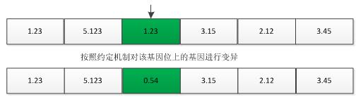 如果是浮点数编码,则变异可以就染色体中间的某一个基因位的信息进行变异(重新生成或者其他调整方案)。
