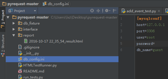 首先,读取 db_config.ini 配置文件。 创建 DB 类,__init__()方法初始化,通过 pymysql.connect()连接数据库。