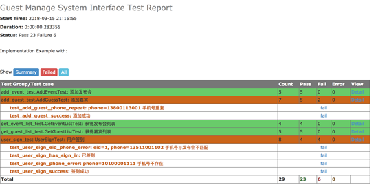 通过 time 的 strftime()方法获取当前时间,并且转化成一定的时间格式。作为测试报告的名称。这样做目的是是为了避免因为生成的报告的名称重名而造成报告的覆盖。最终,将测试报告存放于report/目录下面。如下图,一张完整的接口自动化测试报告。