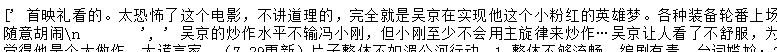 使用print(eachCommentList)查看eachCommentList列表中的内容,可以看到里面存里我们想要的影评。如下图所示: