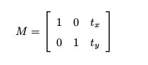 平移就是将图像换个位置,如果要沿(x,y)方向移动,移动距离为(tx,ty),则需要构建偏移矩阵M。