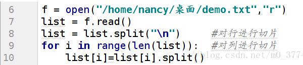 但事实上我在用"\n"来进行切片的时候,在末尾留下一个""空的小尾巴,可能是文本中末尾也有一个换行符,所以我在第9行用list.pop()把空的元素去掉了。(window环境中不需要)